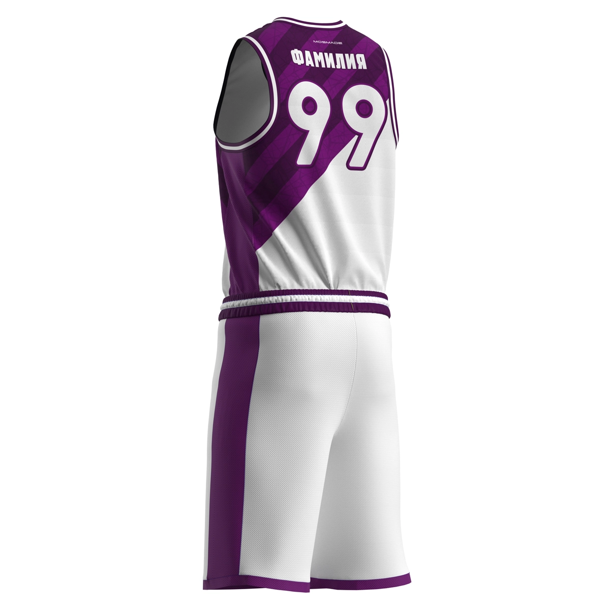Баскетбольная форма на заказ. Комплект формы состоит из майки и шорт. Модель майки свободная с боковыми вставками. Майка прямого кроя с V-образным вырезом. Шорты прямые, свободные.