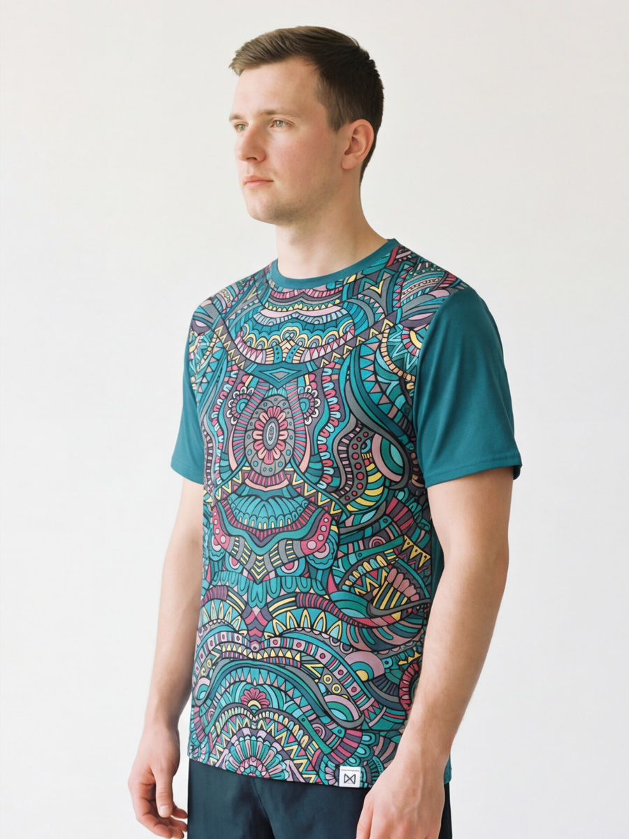 Футболка для спорта и прогулок. Модель футболки свободная, удлиненная. Изготавливается из ткани максимально имитирующую натуральный хлопок. В футболке комфортно находится дома и на улице.