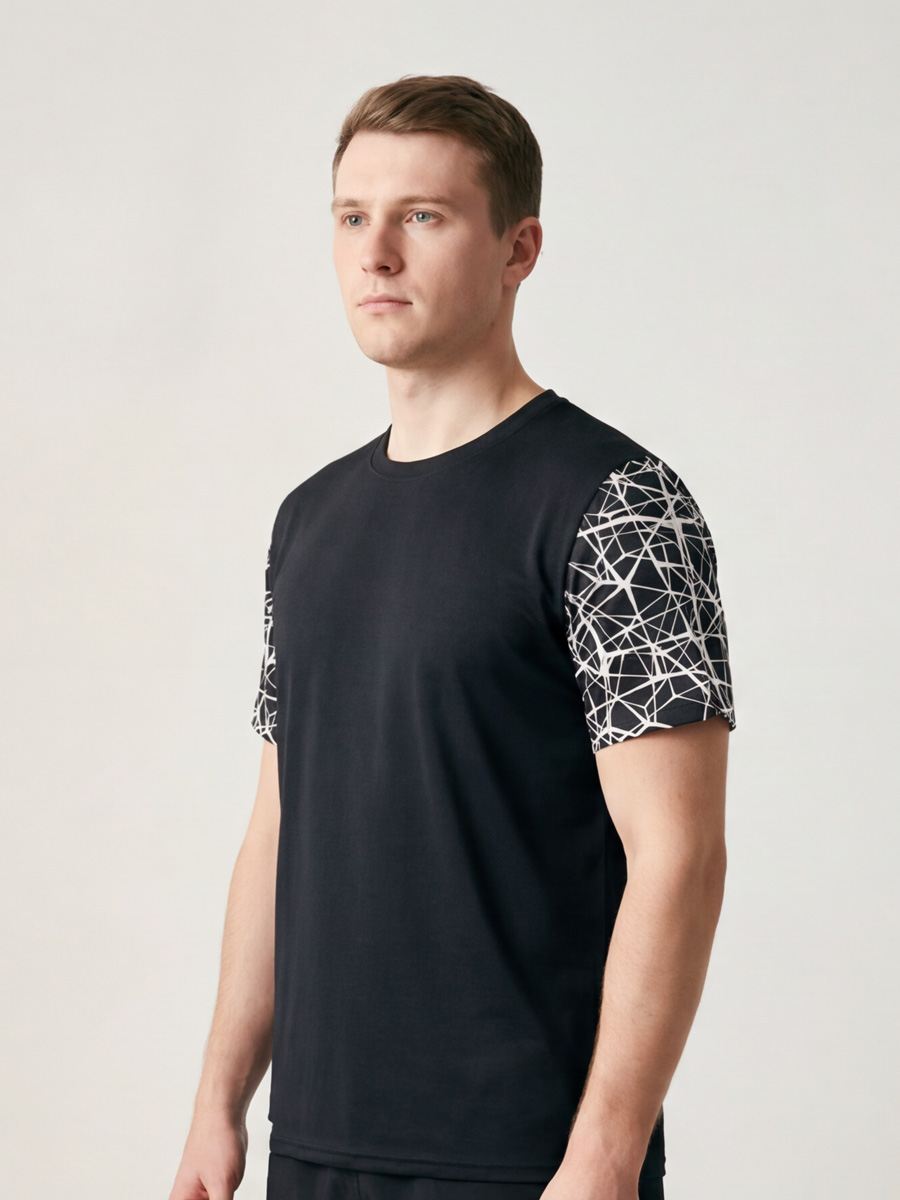 Футболка для спорта и прогулок. Модель футболки свободная, удлиненная. Изготавливается из ткани максимально имитирующую натуральный хлопок. В футболке комфортно находится дома и на улице.