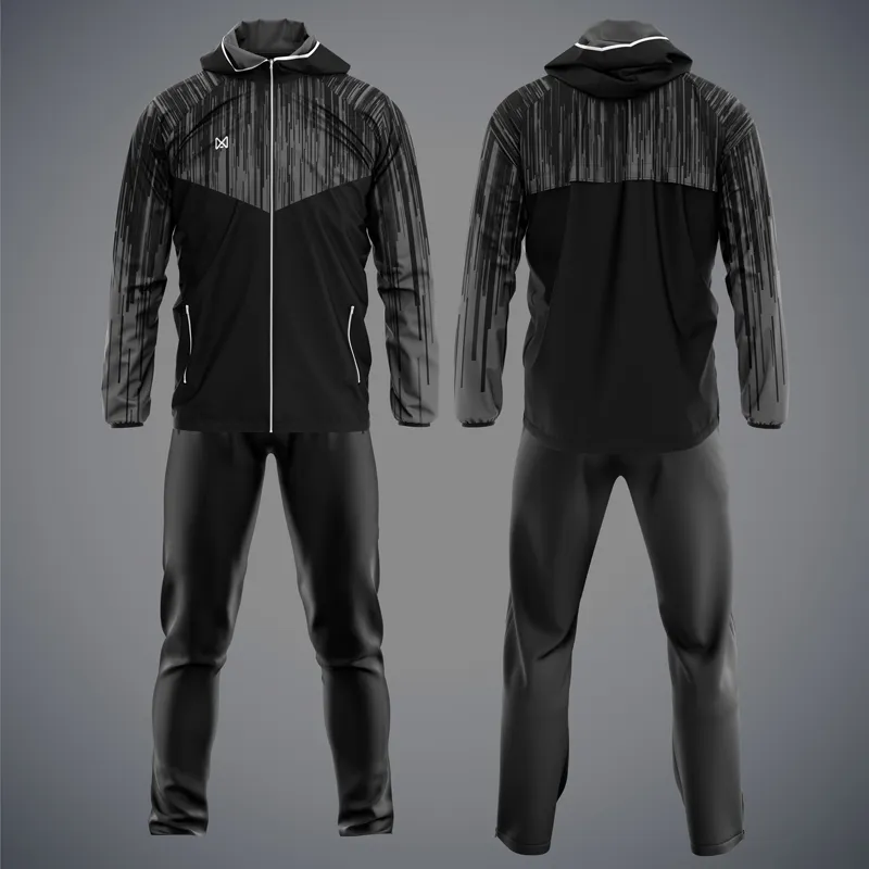 Спортивный костюм изготовлен из материала с ветрозащитными характеристиками. Мягкий на ощупь со специальными свойствами ветрозащиты и антидождь. Модель куртки с воротником стойка и штанами. Идеально подходит, как для занятия спортом на улице в прохладную погоду, так и для прогулок.