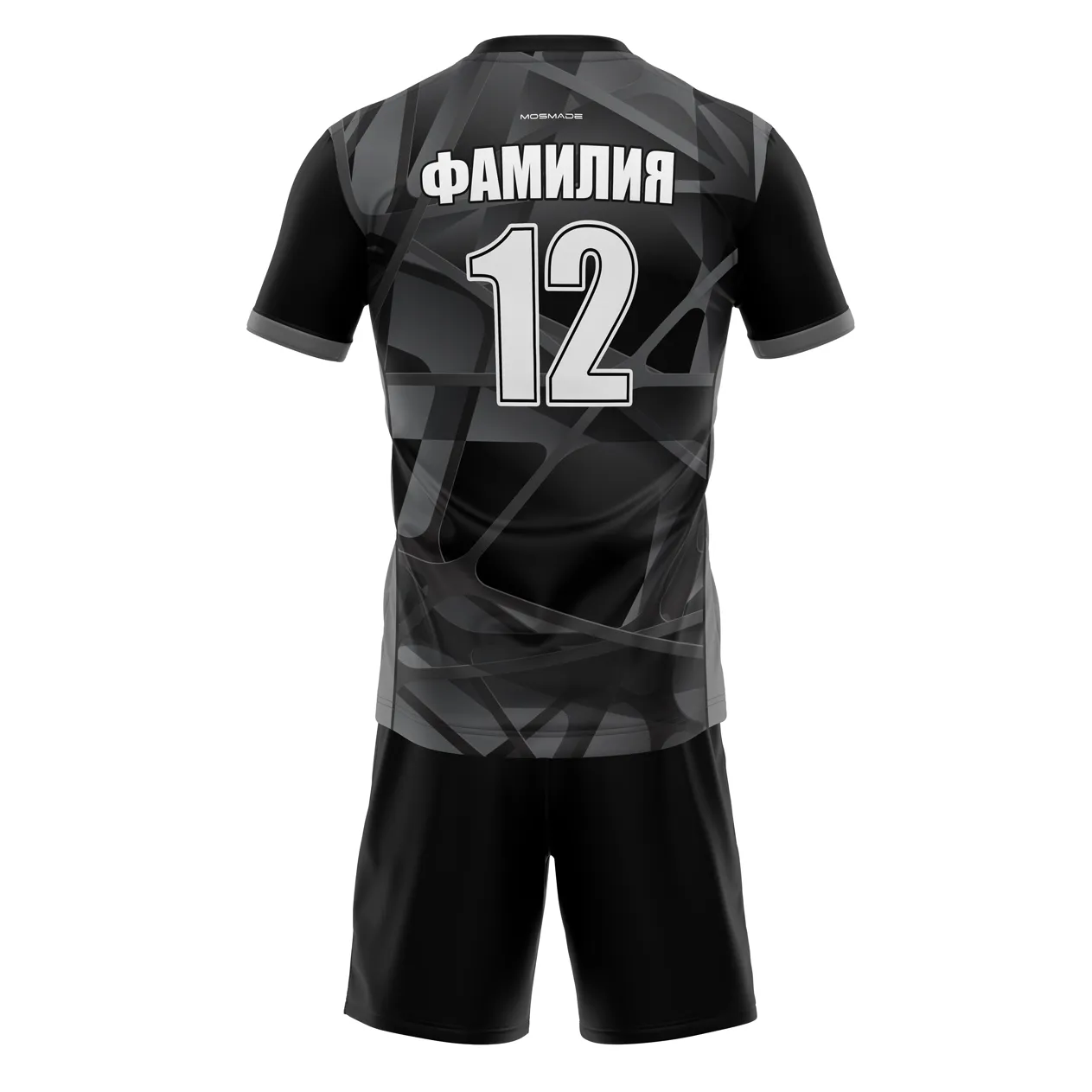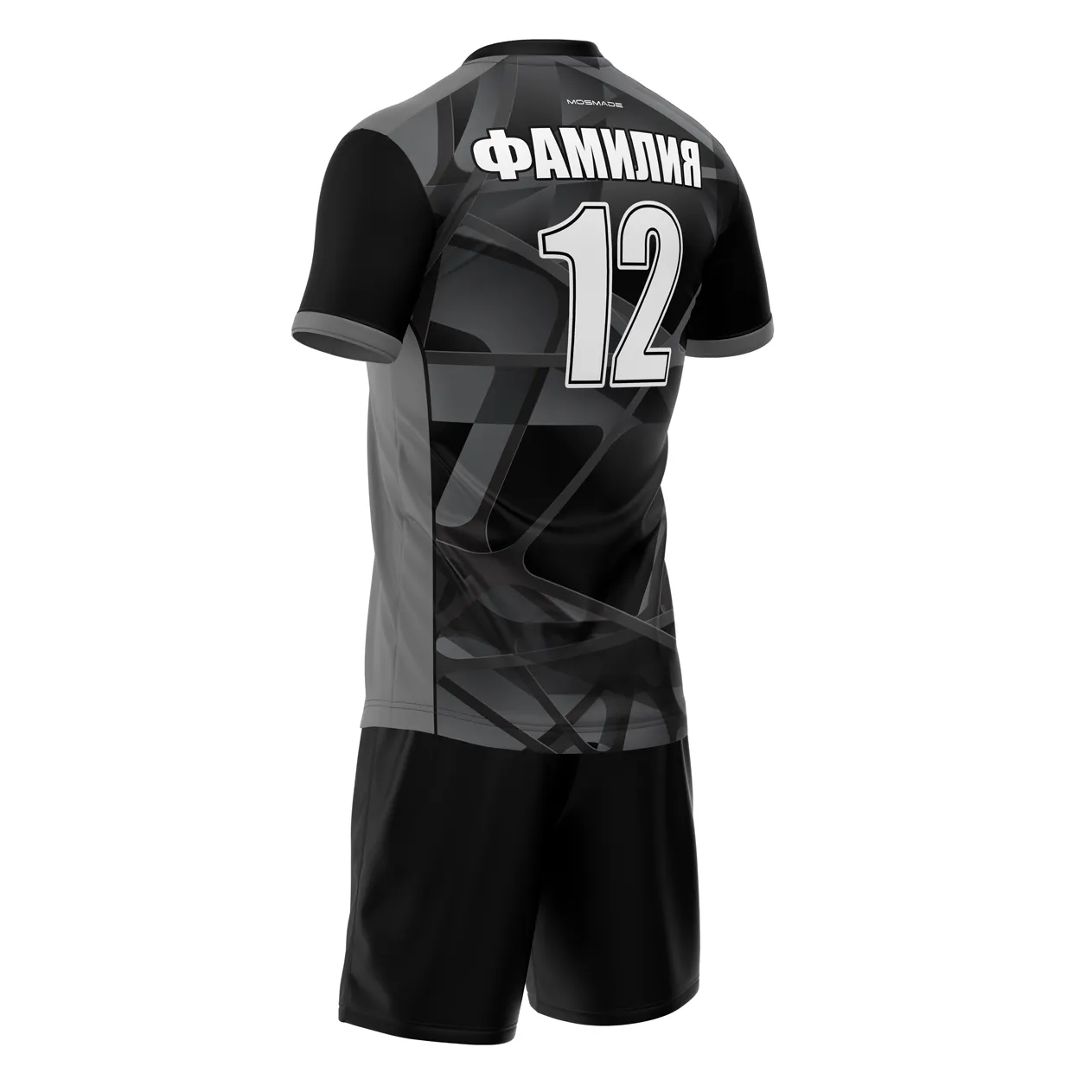 Мужская волейбольная форма на заказ. Комплект формы состоит из футболки и шорт. Модель футболки свободная. Футболка прямого кроя с V-образным вырезом, короткие втачные рукава. Шорты прямые, свободные.