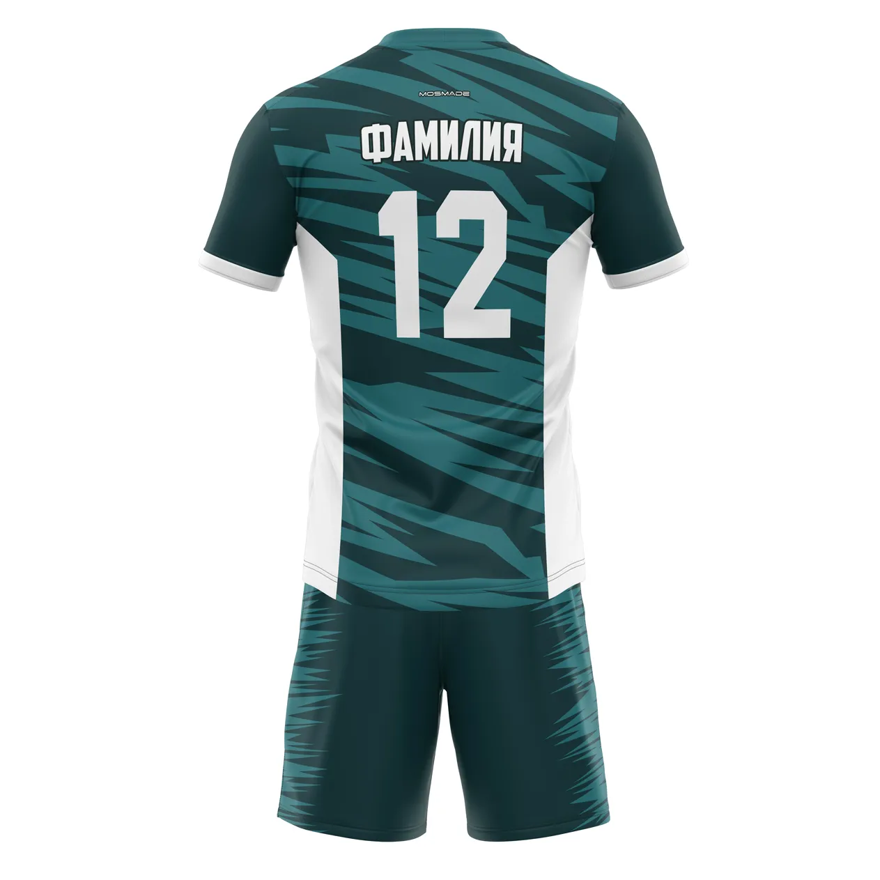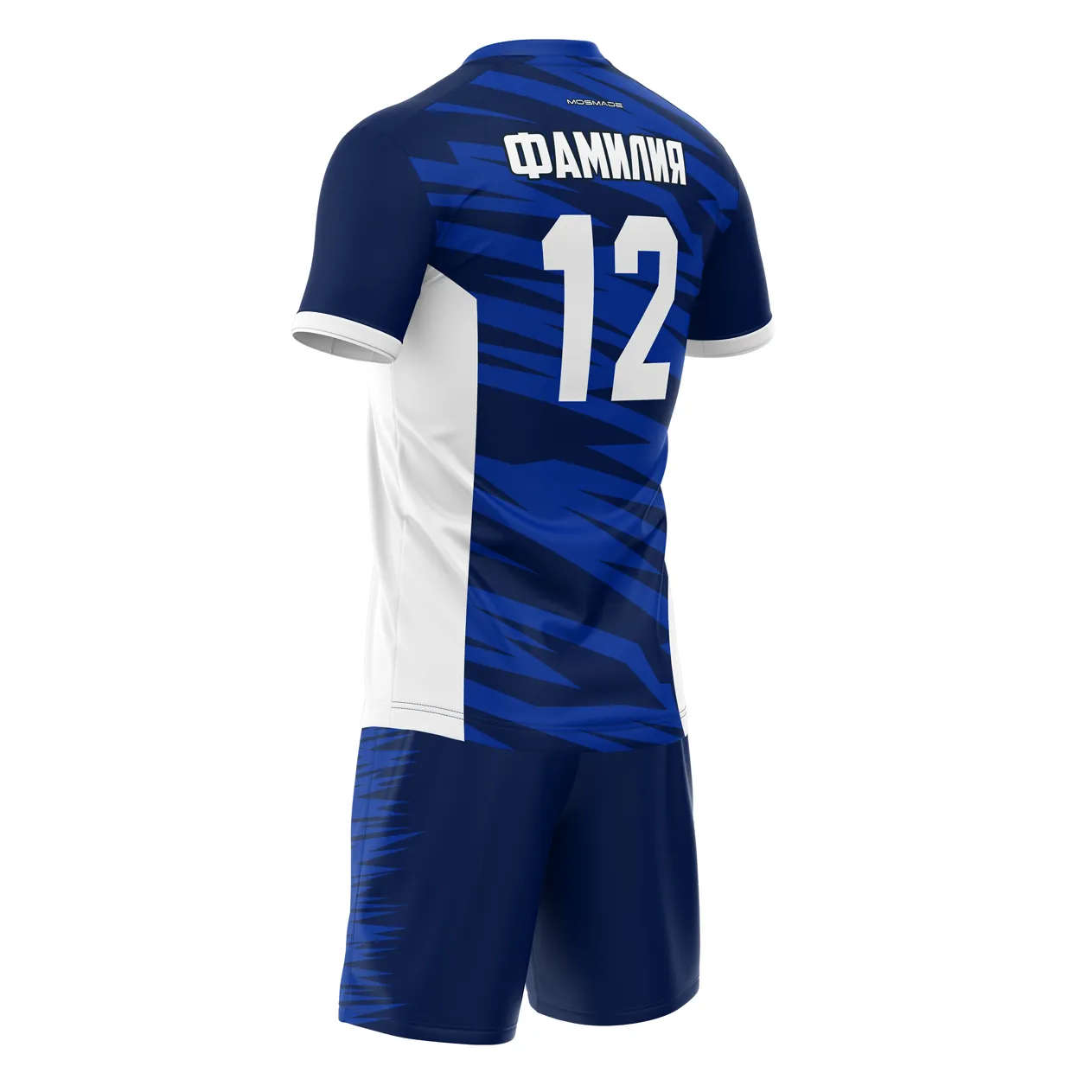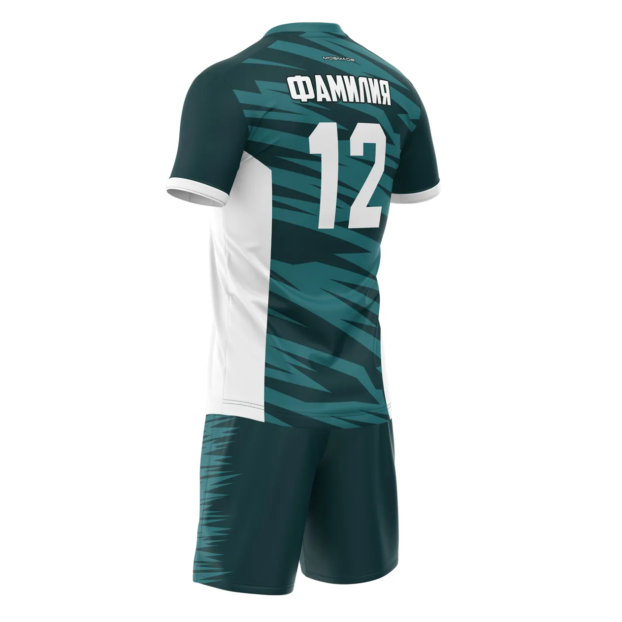 Мужская волейбольная форма на заказ. Комплект формы состоит из футболки и шорт. Модель футболки свободная. Футболка прямого кроя с V-образным вырезом, короткие втачные рукава. Шорты прямые, свободные.