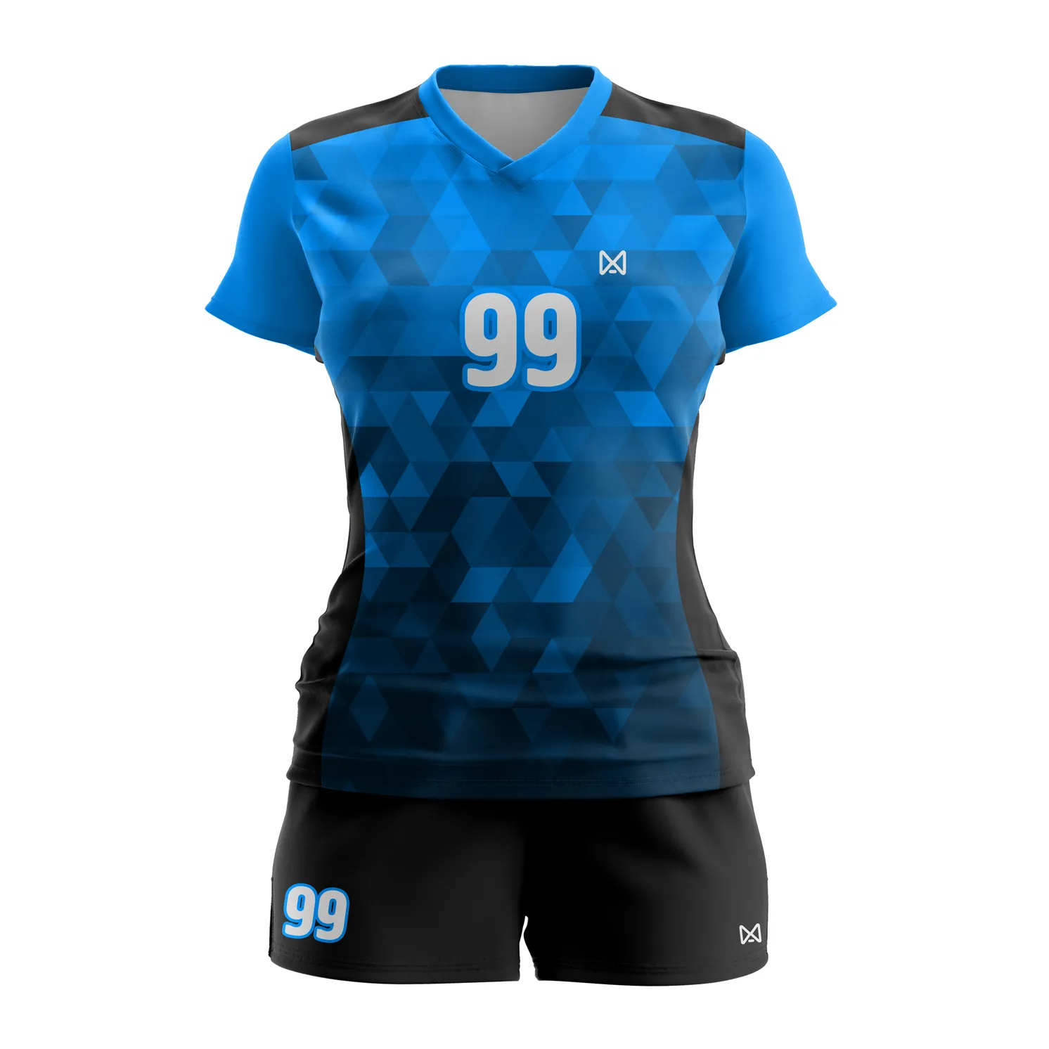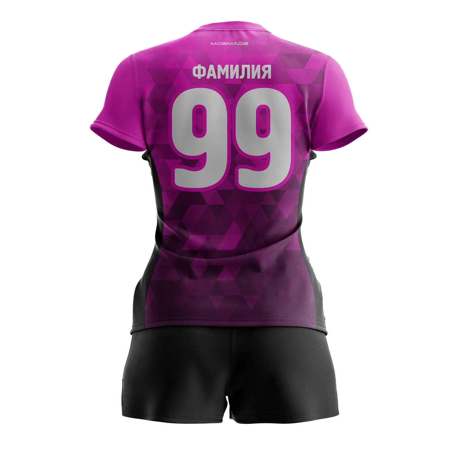 Женская волейбольная форма на заказ. Комплект формы состоит из футболки и шорт. Модель футболки свободная, приталенная. Футболка прямого кроя с V-образным вырезом, короткие втачные рукава. Шорты прямые, свободные.